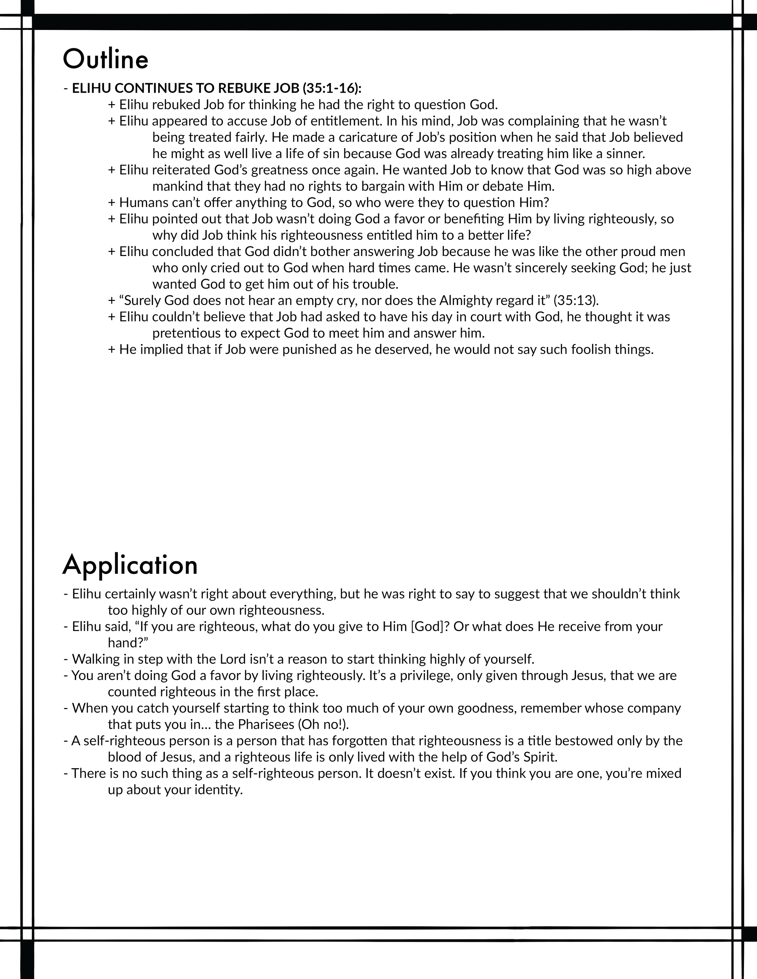 Elihu certainly wasn’t right about everything, but he was right to say to suggest that we shouldn’t think too highly of our own righteousness.
